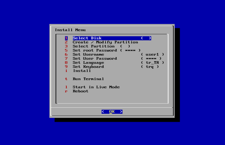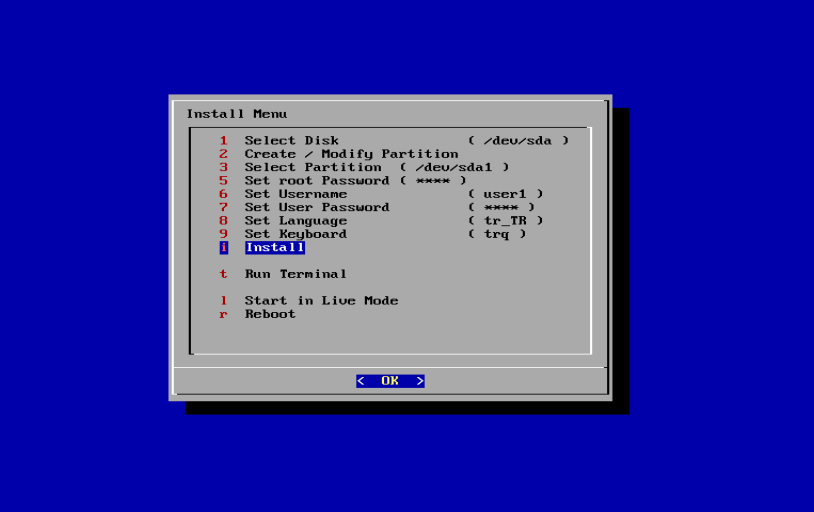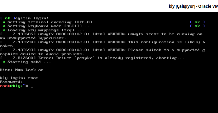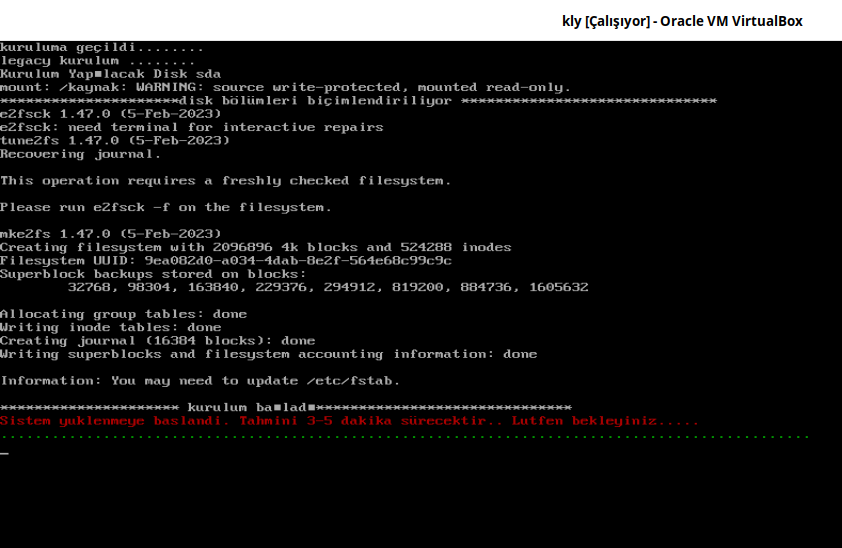 Şimdi hazırlanan ISO’yu QEMU veya VirtualBox kullanarak çalıştıralım. Ekran görüntüleri aşağıda verilmiştir.