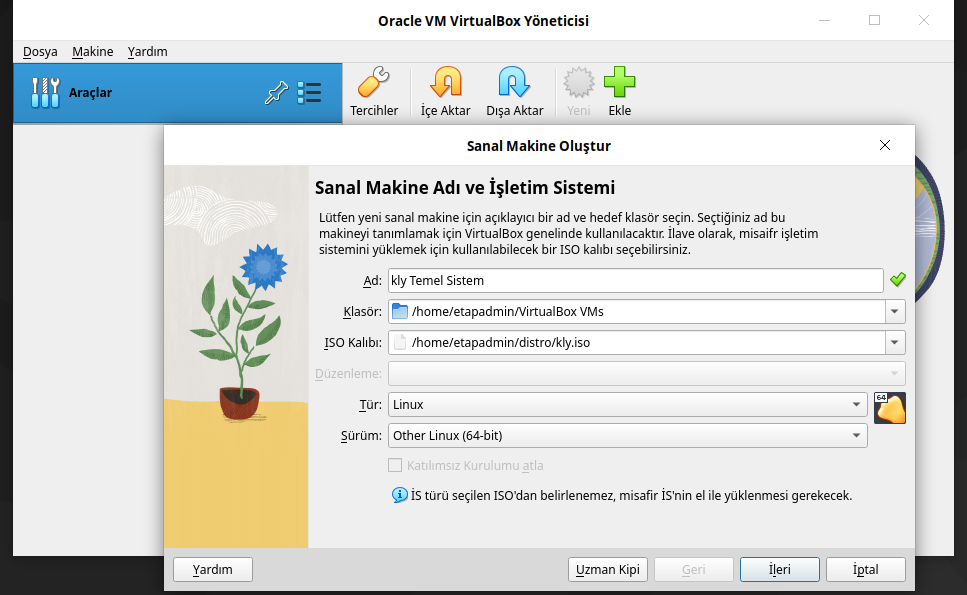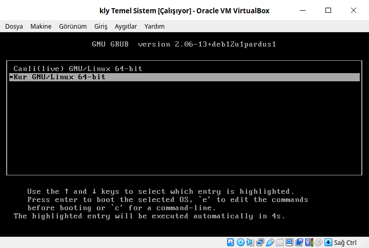 İso açıldığıda aşağıdaki gibi ekran gelecektir. Burada seçili olan iso Temel Sistem isosudur.
