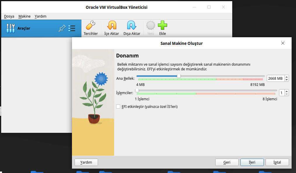 İleri seçeneği seçilir ve aşağıdaki gibi ekrana gelirsiniz. Bellek miktarını aşağıdaki gibi belirleyiniz. İleri seçeneği seçilir.