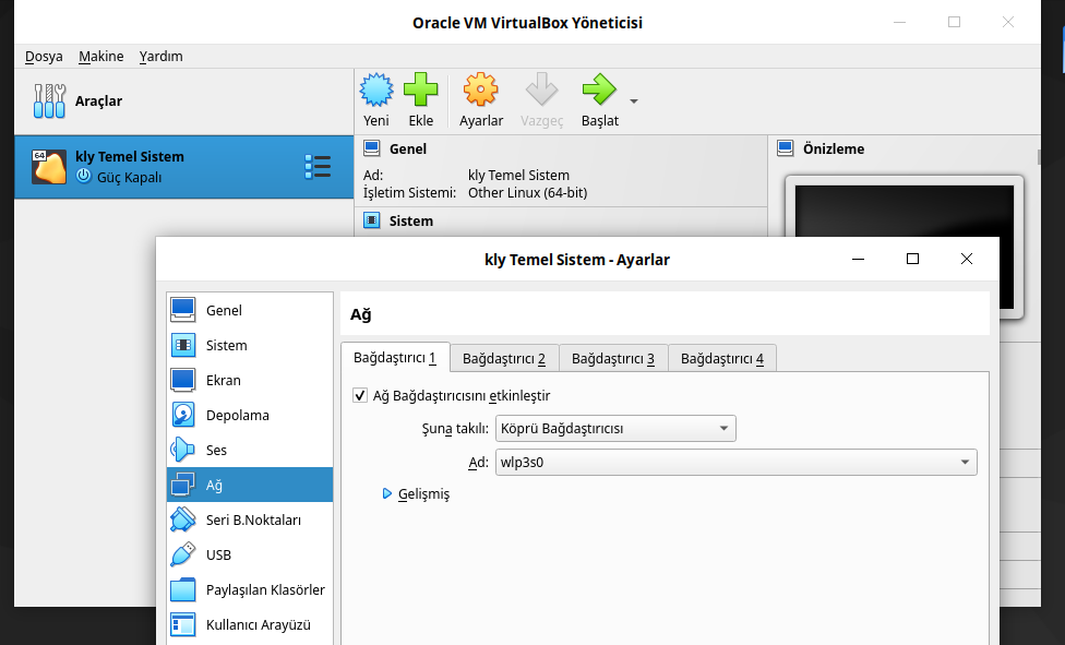 Ayarlar bölümünde aşağıdaki gibi Ağ ayarında değişiklik yapılır.